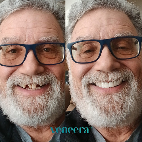 Le Faccette-Dentali Veneera™ correggono denti disallineati, spazi vuoti, denti scheggiati, denti irregolari e denti mancanti, bilanciando le aree interessate con materiale aggiuntivo. Questo permette alla faccetta di creare un sorriso praticamente impeccabile.